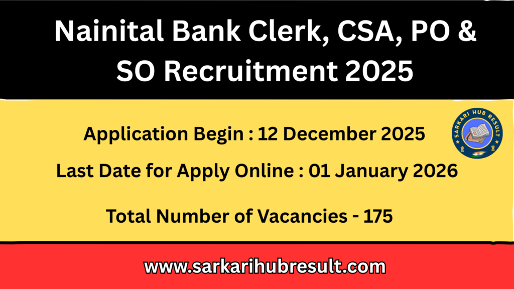 | Nainital Bank Clerk, CSA, PO & SO 2025 Online Form Nainital Bank Clerk, CSA, PO & SO 2026 Exam Overview WWW.SARKARIHUBRESULT.COM | ||||||