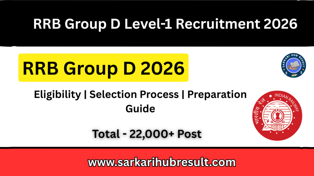 RRB Group D Recruitment 2026 – Online Form RRB Group D 2026 | 22,000+ Posts | Apply Online WWW.SARKARIHUBRESULT.COM | |||||