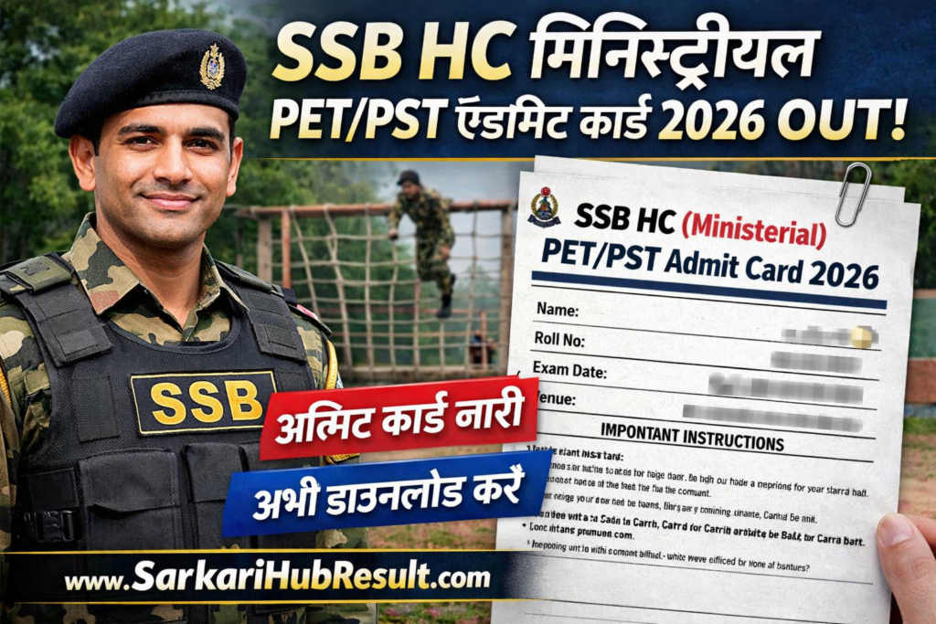 SSB HC Ministerial PET/PST Admit Card 2026 Out SSB HC Ministerial Recruitment Exam 2026 – Overview WWW.SARKARIHUBRESULT.COM | |||||